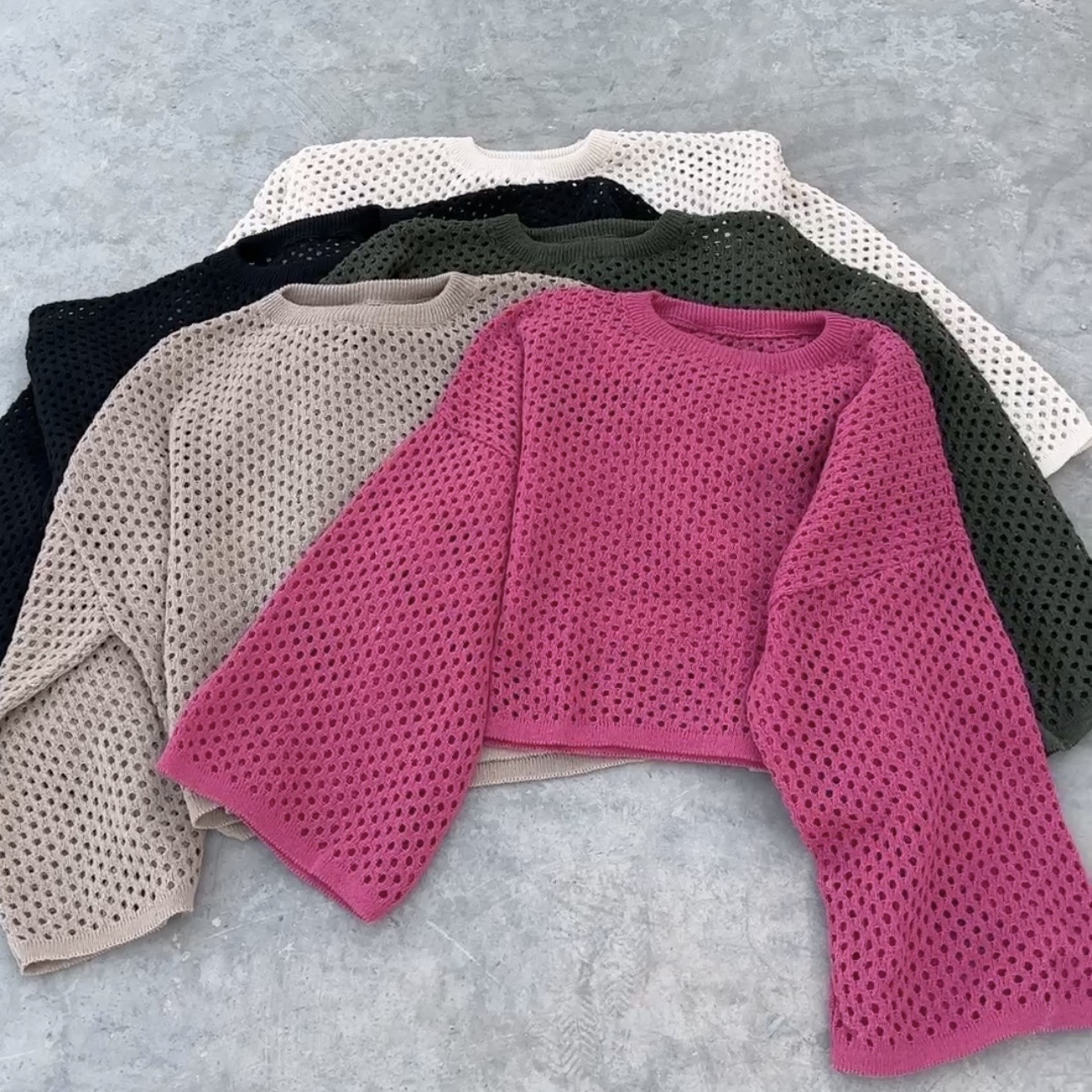جدیدترین ترند فصل: بافت توری (Mesh Knit) آستین گشاد