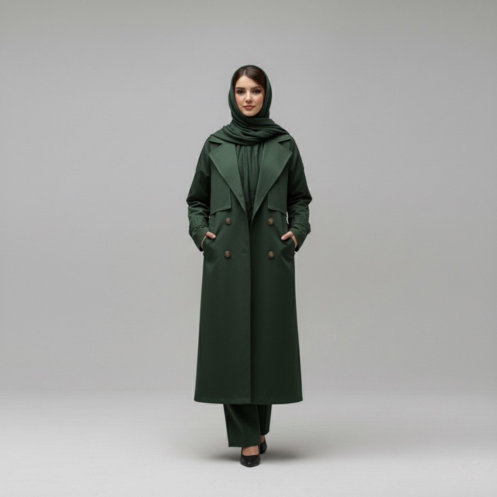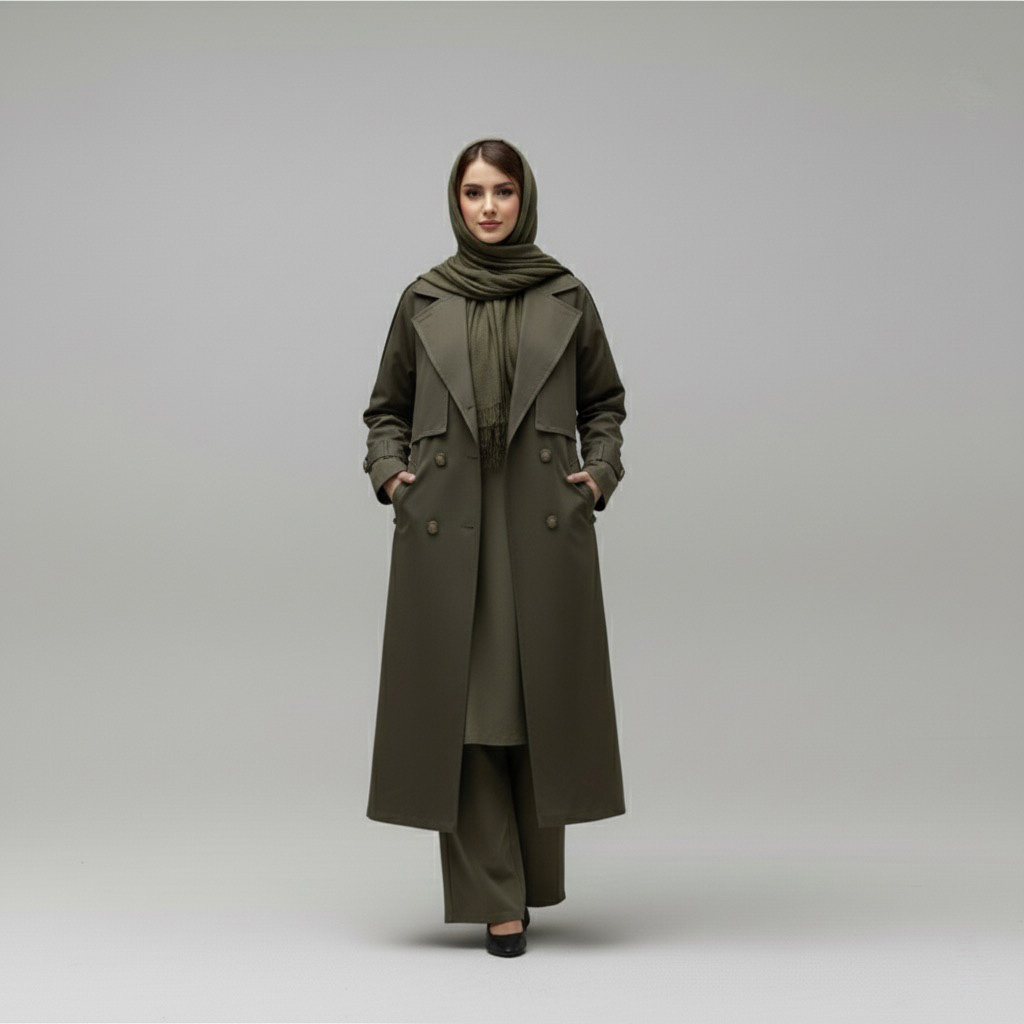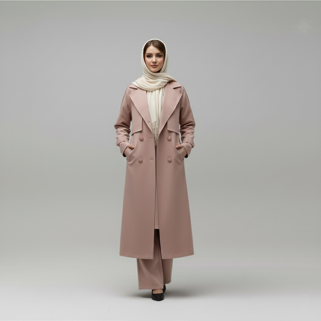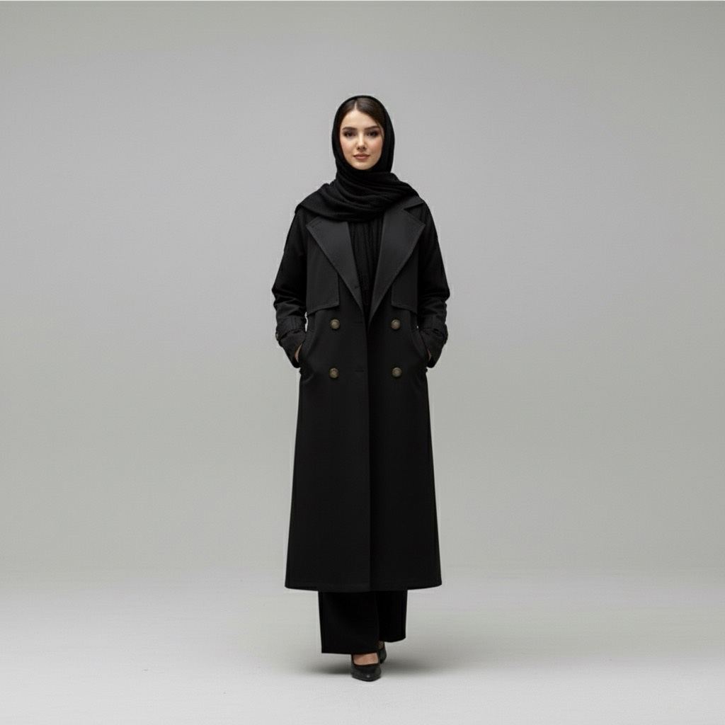 ترنچ کت بلند کتان TC – استایلی بینقص و کاربردی