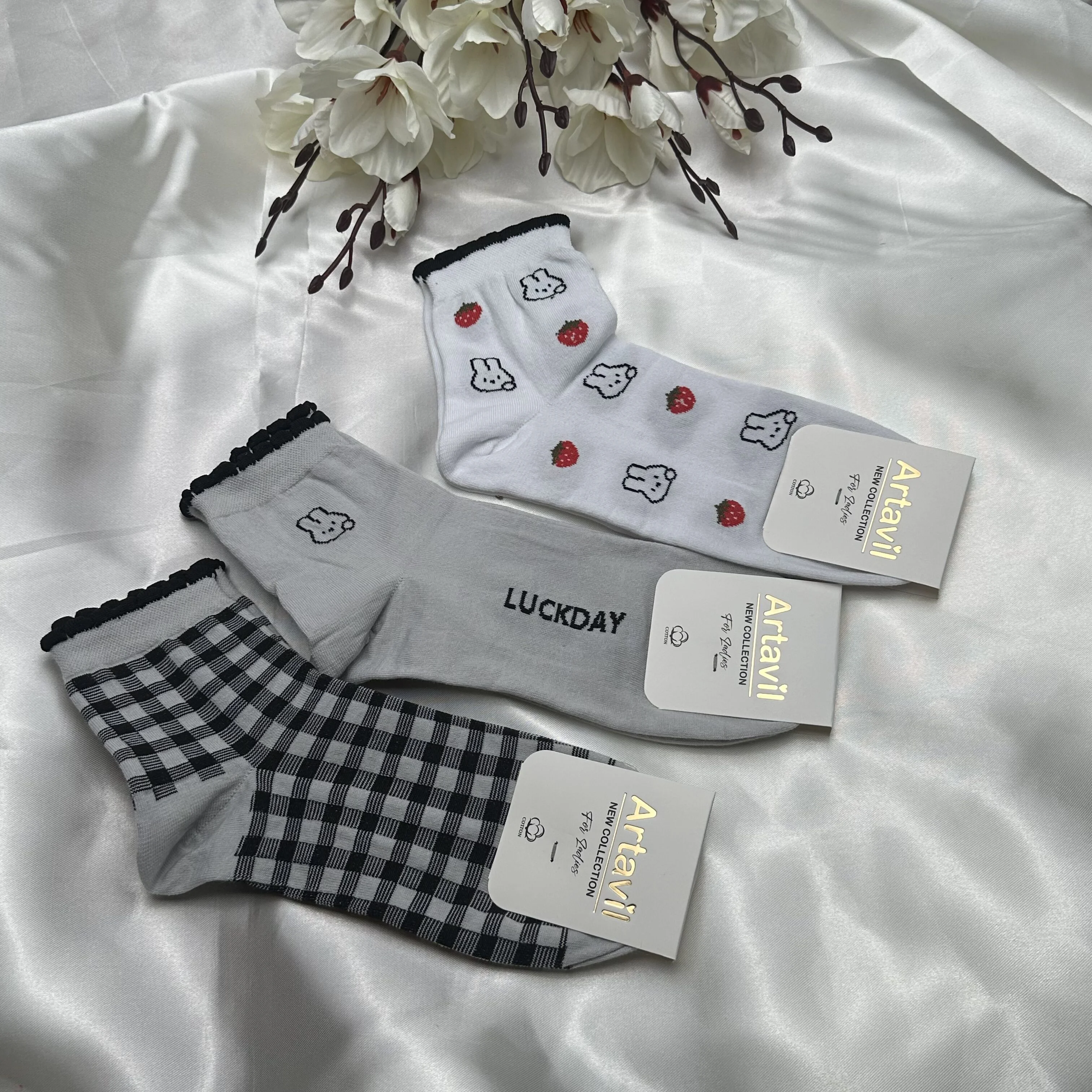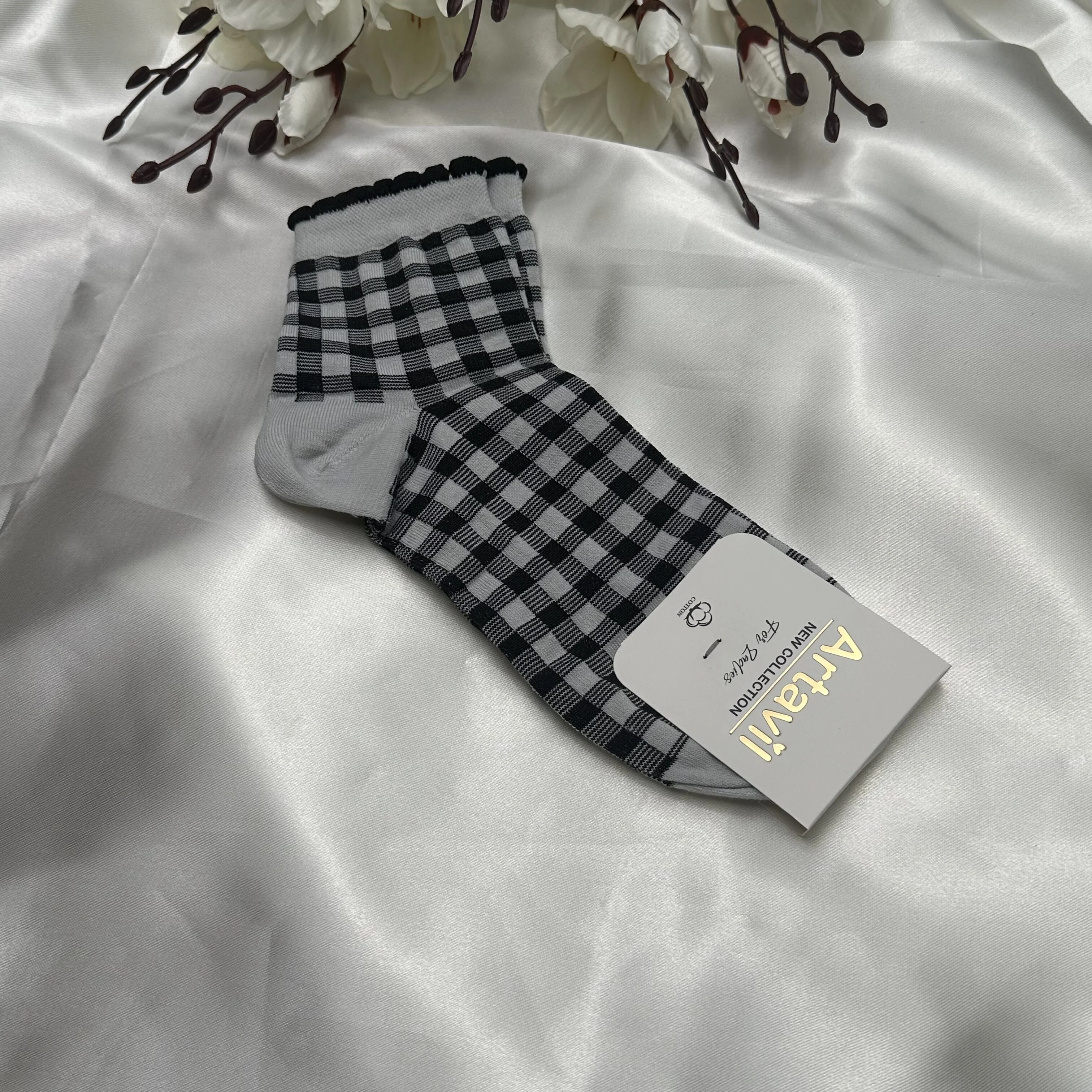 جوراب نیم ساق از جنس نخ پنبه.