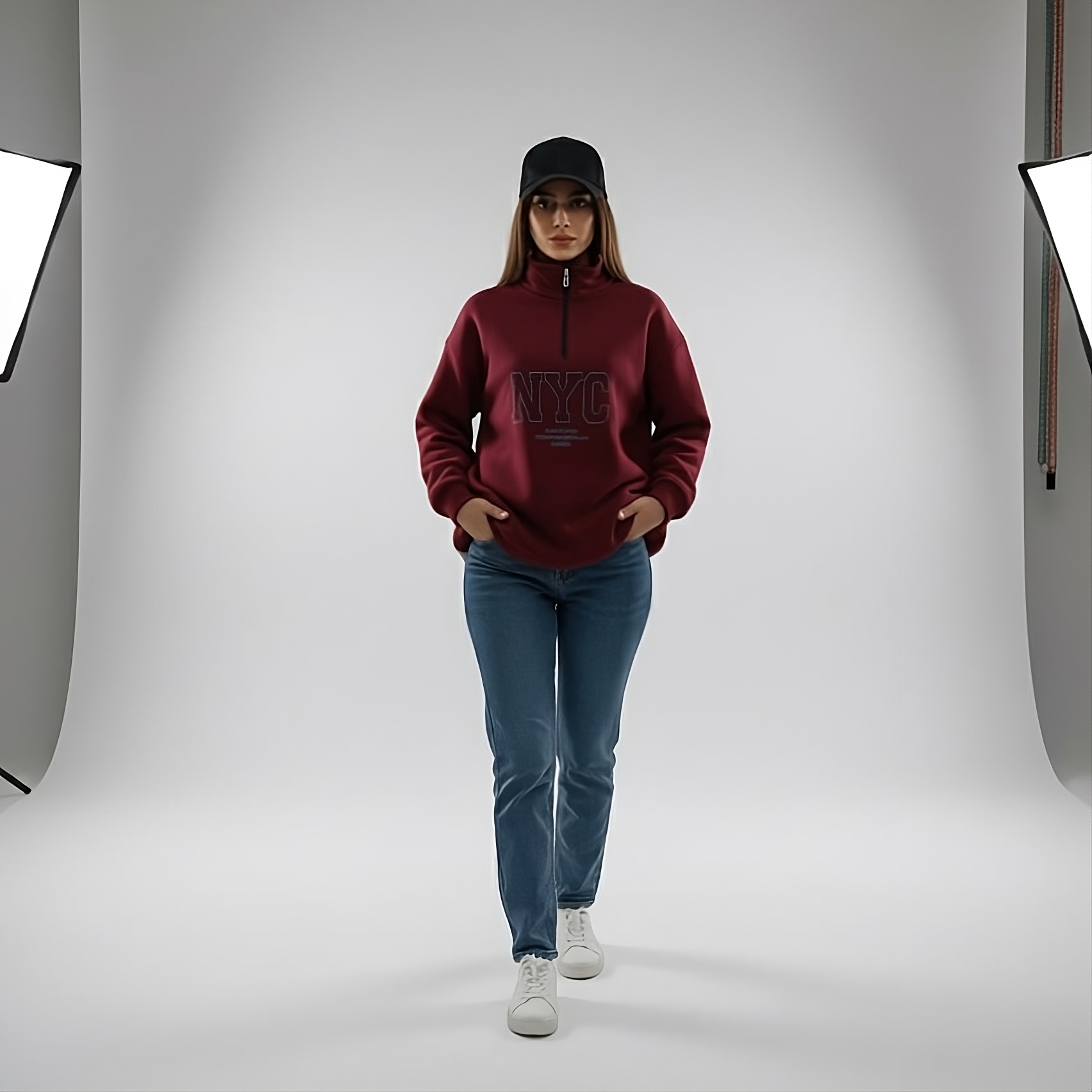 دورس نیم زیپ Boxy Fit زنانه – استایل گشاد و گرم برای زمستان