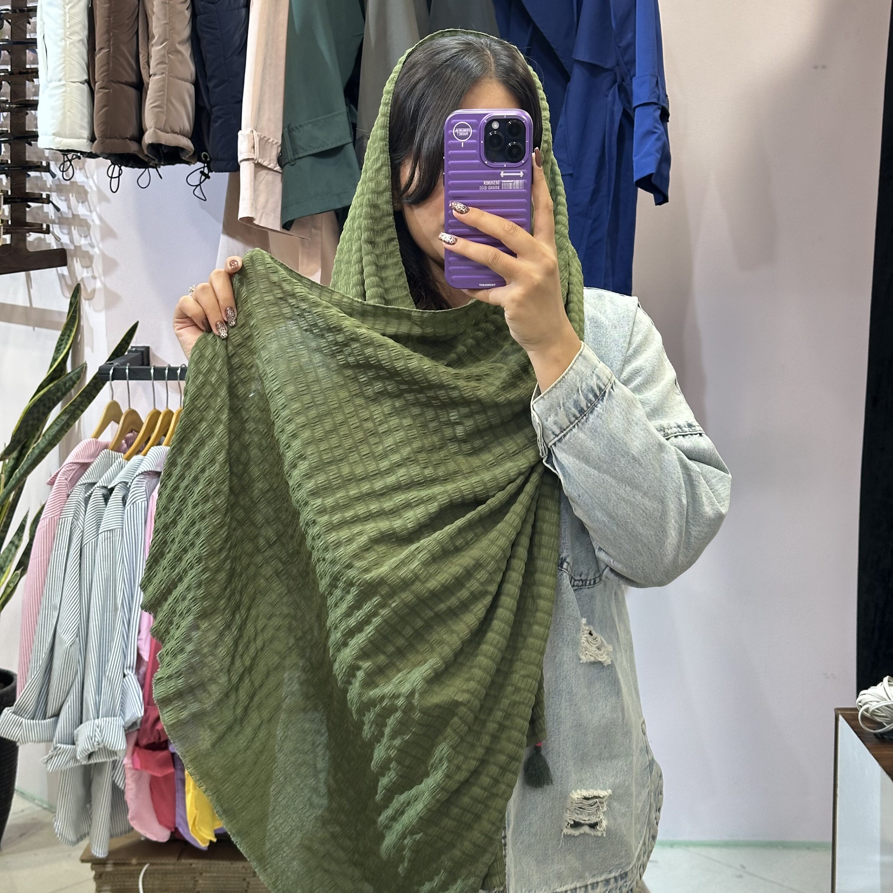 شال آرامیس مدل پفکی در طیف کاملی از رنگهای خنثی و خاص عرضه میشود؛ از رنگهای مشکی و سفید زرد، سبز زیتونی و آبی نفتی. برای هر سلیقهای یک رنگ جذاب وجود دارد!